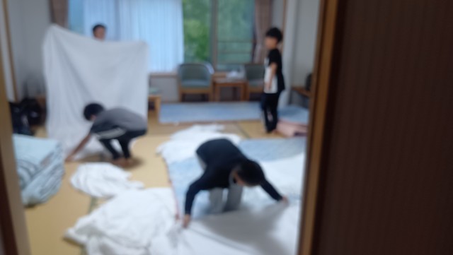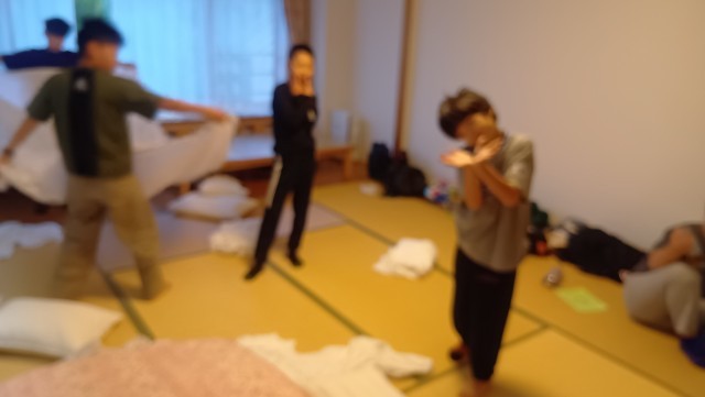 おはようございます。昨日はよく眠れたようです。起床時間を迎えても、結構な人数が寝ていました。部屋では目覚まし時計が虚しく鳴り響いていました…