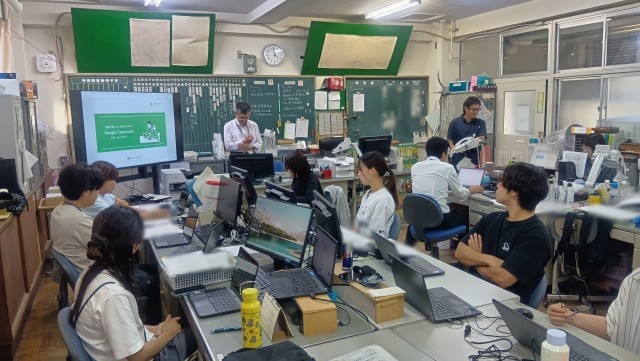 今日は大東市教育委員会の方に研修講師をお願いし、児童用端末の仕様などを教えていただきました。大人は少し戸惑っていましたが、子どもはすぐに慣れると思います。