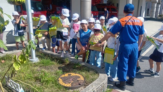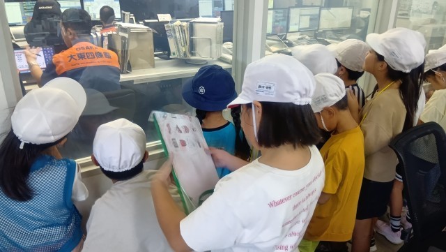 消防車に乗せていただいたり、仮眠室、食堂、指令室など普段見たり触ったりできないものに触れるとても貴重な体験中。