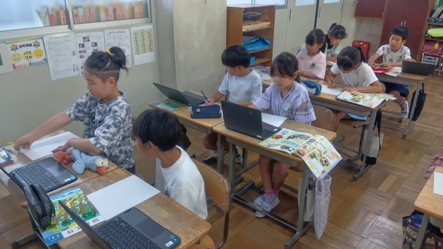 図工で使うデザインをネットで調べる子どもたち。昨日chrome端末に変わったばかりなのにもう使いこなしています。
