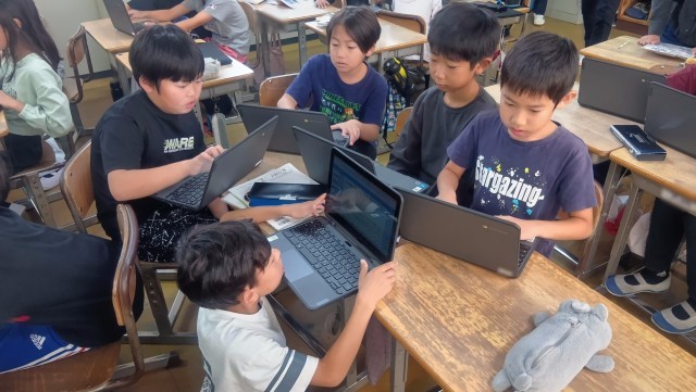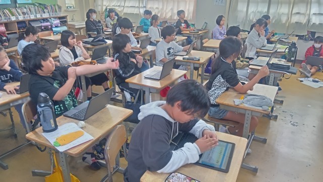 社会の時間、「天神祭り」について調べ、スライドに上手にまとめていました。市内の他校や大学の先生方も見に来ておられ、氷野小の授業スタイルを見て驚いておられました(もちろん良い意味で)。