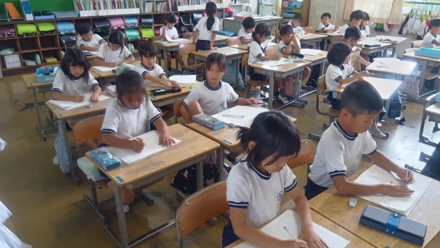 国語の時間、静かにしっかりノートに書き写しています。姿勢もよいです。