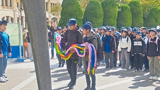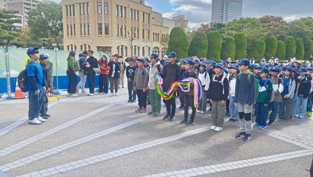 全校児童が心を込めて折った千羽鶴を捧げてきました。とても集中できていました。