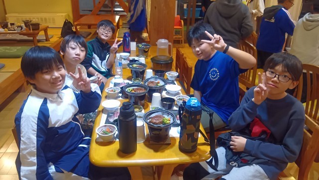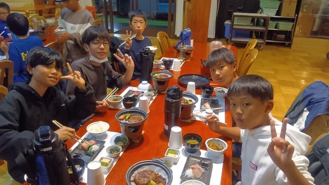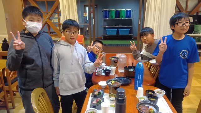 ハンバーグ、煮浸し、わらび餅、味噌汁肉じゃが、刺身など全9品の豪華ご飯。