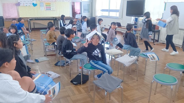今日は大阪880万人訓練の日。訓練後もなぜか頭の上に教科書が…。