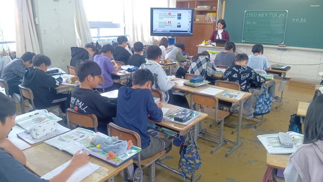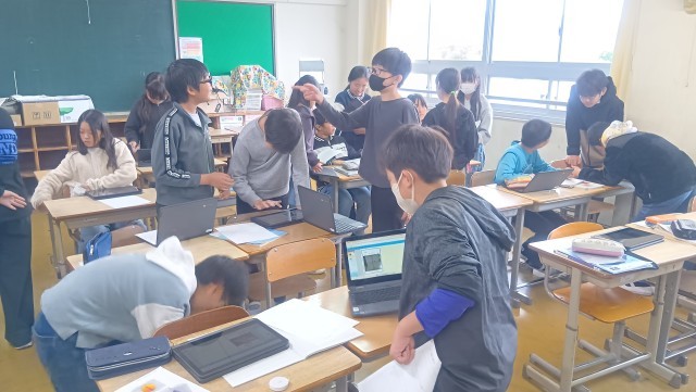 算数の時間、自分で撮影した物のおおよその面積を考えていました。自分の考えを周りの友だちに「ここが三角形でこっちは長方形に近い」など自分の言葉で伝えています。