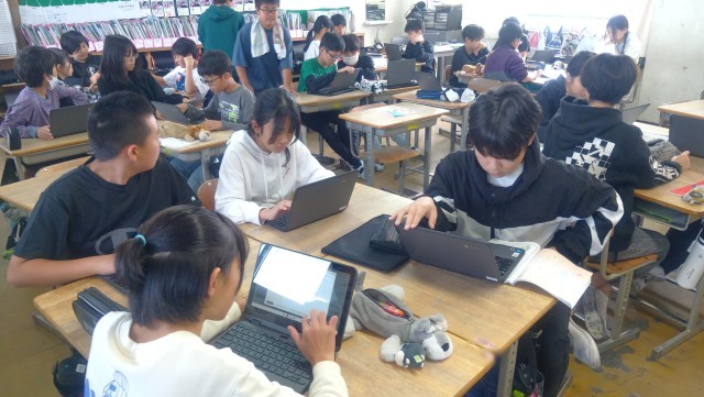 6年生はすごい。先生が指示しなくてもGoogleドキュメントで共同編集機能があることに気が付いたようです。「先生、○○を許可して」など先生に依頼し、「Word(前のPCアプリ)よりすごい!」と新しいアプリを使いこなしています。