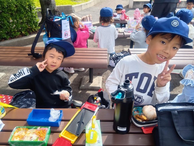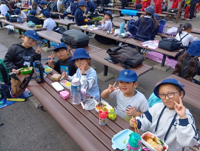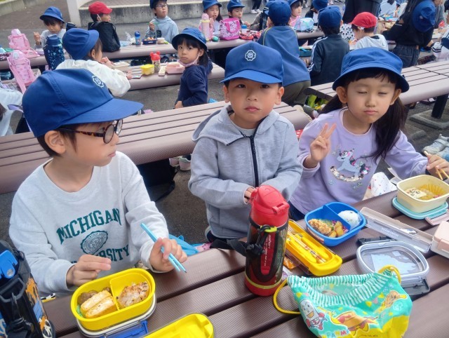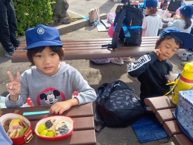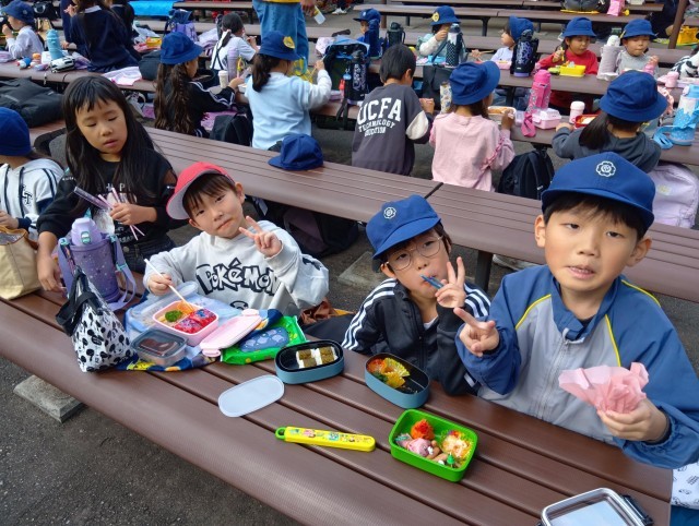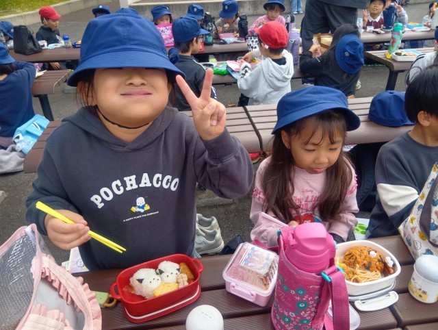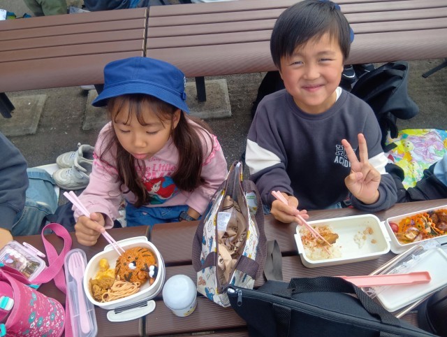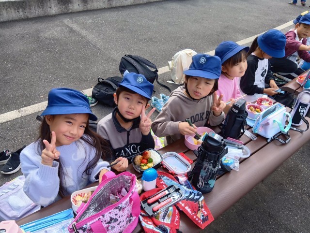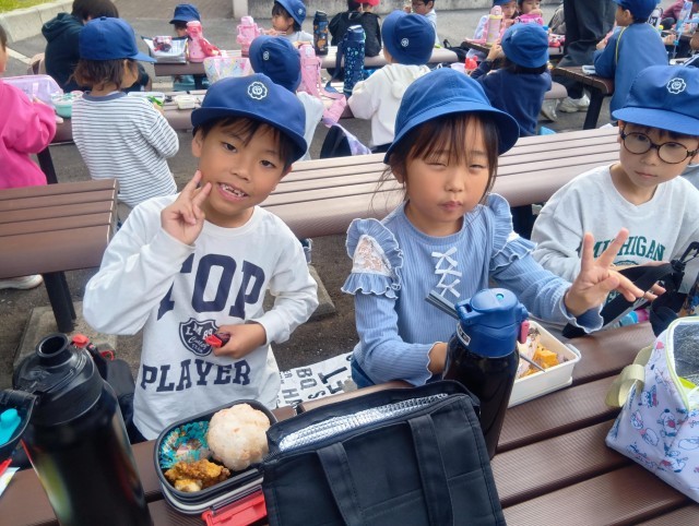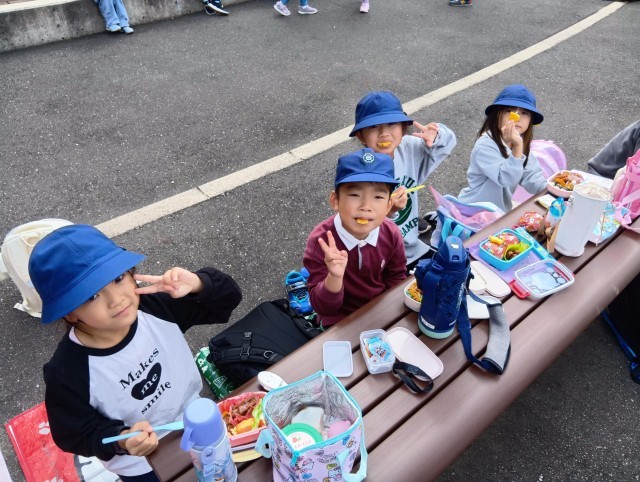 みんな美味しいそうなお弁当に、とってもいい笑顔です。