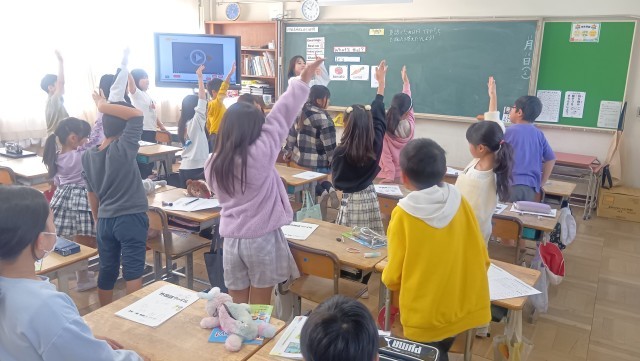 英語の時間、積極的に発音する子どもたち。発表したい!という気持ちが伝わります。
