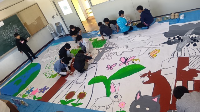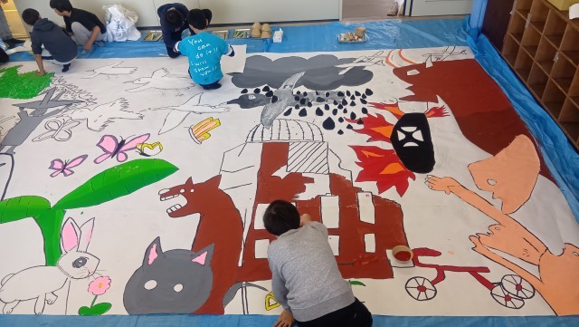 キッズゲルニカ、毎日のように実行委員さん中心に頑張っています。