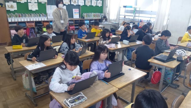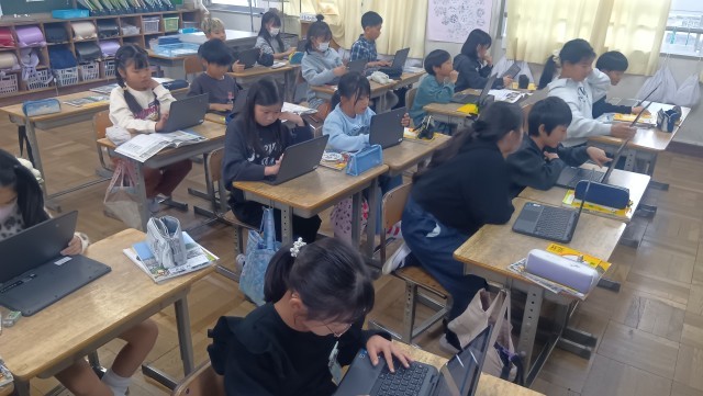 交通安全の工夫をまとめている子どもたち。身近なものの意味を理解することも大切ですね。