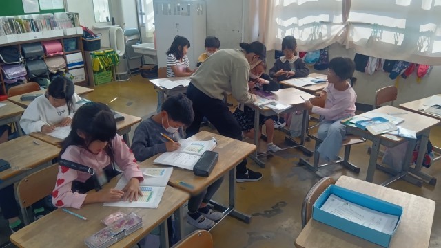 算数の九九も大詰め。サポートの先生も力が入ります。