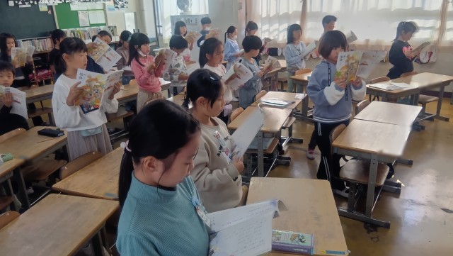 国語の時間音読の練習をしていました。