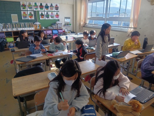 算数の時間、たくさんの問題を解いています。今日は質より量のようです。