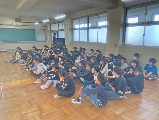 午後から大東市のスクールロイヤー(弁護士)をお招きして人権、特にいじめについてお話しいただきました。子どもたちはとても真剣に聞いていました。「相手の立場に立って考える」ことがとても大切ですね。