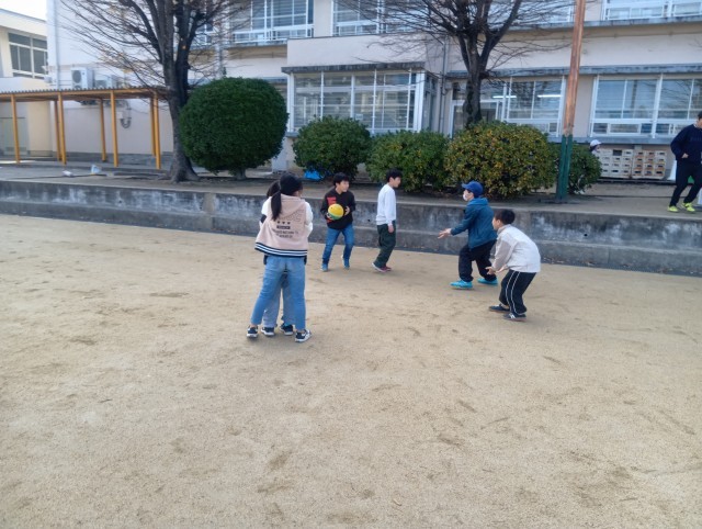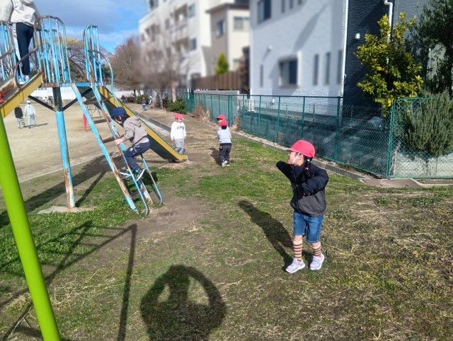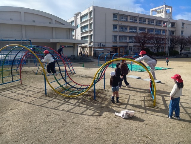今日は寒さが和らぎ、日中は暖かい一日。休み時間は思い思いの遊びで走り回っています。