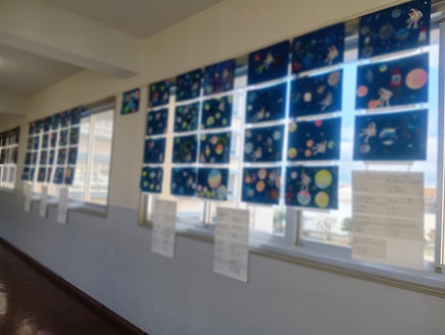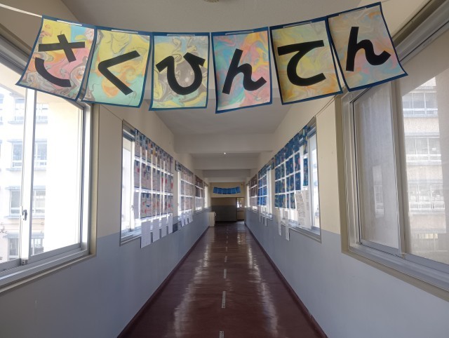 さて、現在本校の体育館は空調工事のため今年度は渡り廊下等で図工作品展を併せて開催しています。
