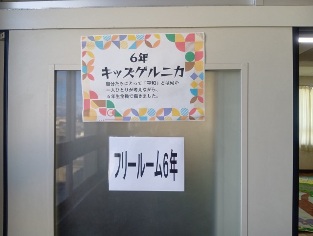 特に6年生の作品 キッズゲルニカは教室いっぱいの大きさの平和お願う見事な作品です。お子様の学年に関係なく是非ご覧ください。