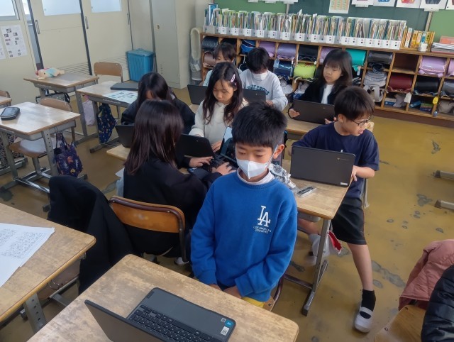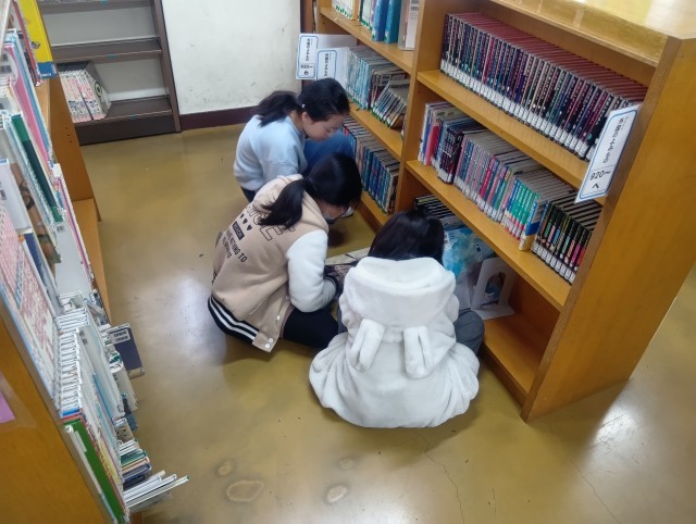 図書の時間、静かに本棚の隅で真剣に読書している子どもたち。そっと覗いてみると怖い本を読んでいるようです。