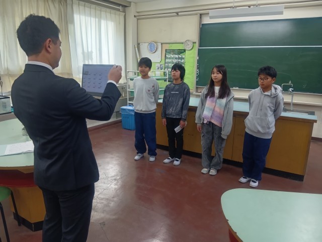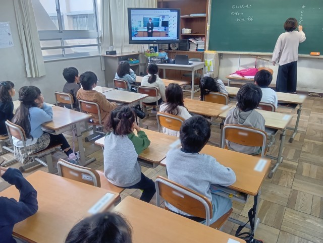 体育館が工事中のため、終業式はon-lineで行いました。