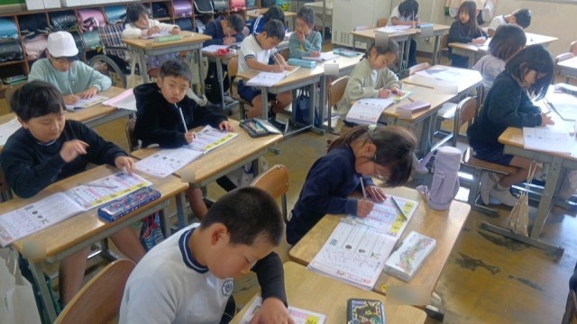 国語の時間、新出漢字の練習をしていました。「電」の字にに苦戦している子が多くいました。バランスが難しいようです。