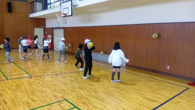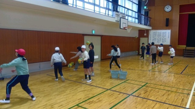 3学期から工事が終わったので体育館で体育ができるようになりました。3学期に取り組むプレルボール(バレーボールに近い運動)の練習をしていました。