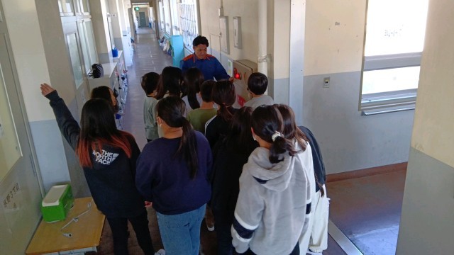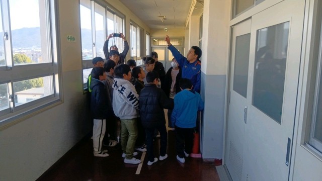大東四條畷消防組合の方にお越しいただき「防火防災講習」を行っていただきました。火災時の煙から身を守る方法を、校内の実際の場所に行って教えていただきました。学校内にある設備についても細かく教えていただき、「助けが来るまであきらめず身を守る」ための知識を経験することができました。お忙しい中ありがとうございました。