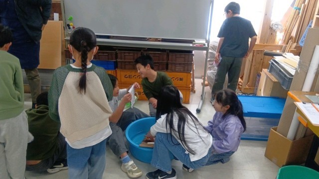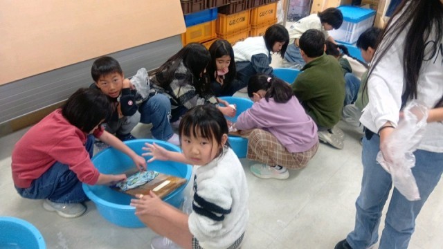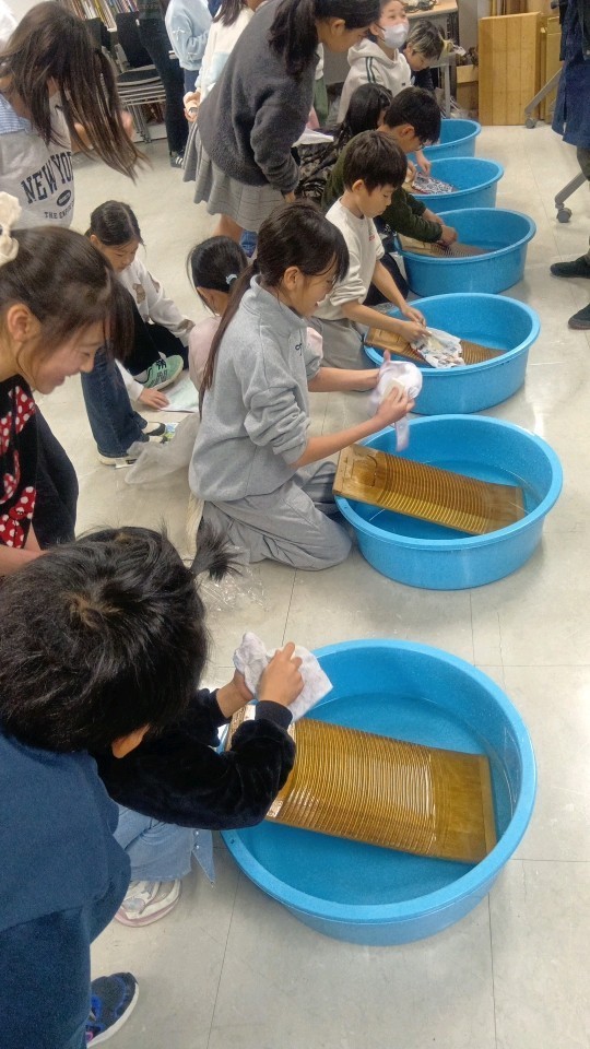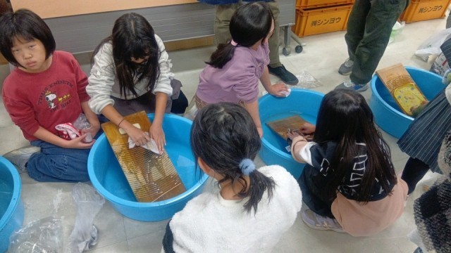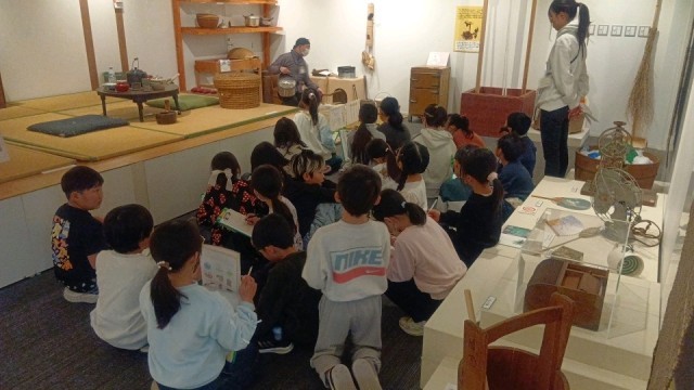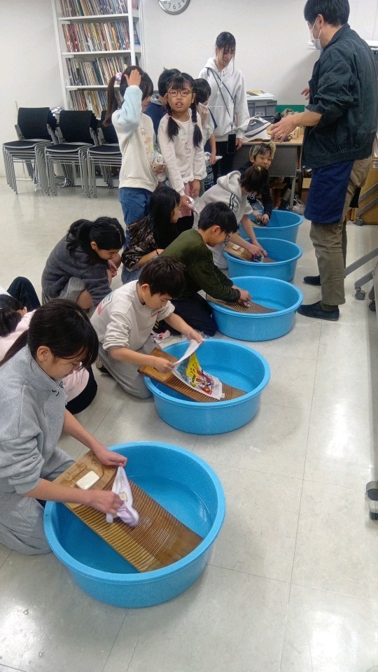 洗濯板体験や昔の黒電話やお手玉等の体験をしました。特に黒電話に大はしゃぎ。