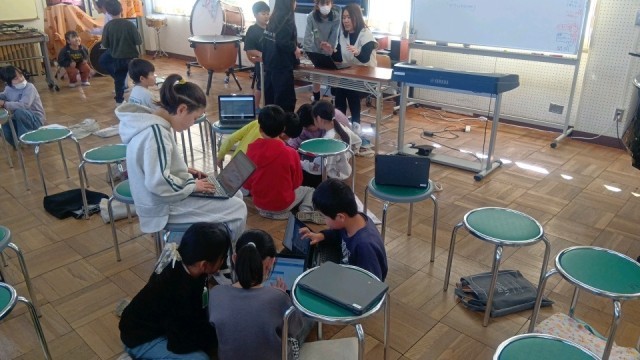 算数の時間、2桁×2桁の掛け算問題を解いていました。ここでも優しく教えている姿をたくさん見ることができます。