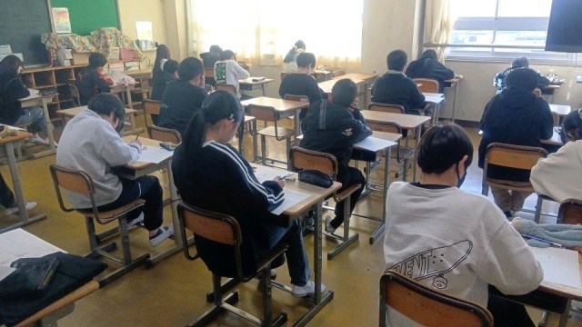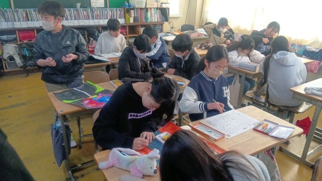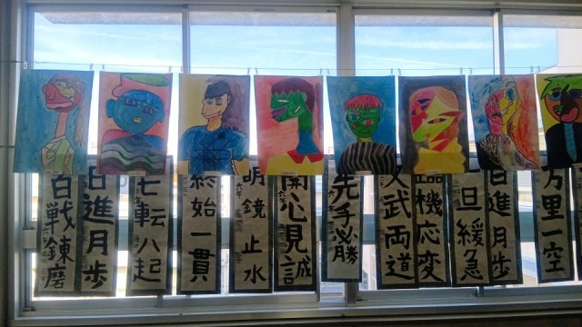 先日から図工の時間に描いていた「ピカソ風」絵画が完成しました。趣があってとてもきれいに仕上がりました。
