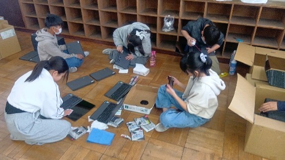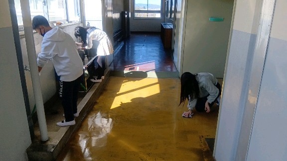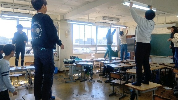 卒業を明後日に控えた6年生。今日は大掃除をしていました。教室の床や天井付近、手洗い場や自分たちの使ったタブレットPCもきれいにお掃除。