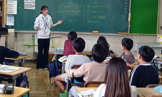 1組の外国語では、「What 〇〇 do you like?」「I like 〇〇.」のフレーズを使って、自己紹介をしていました。