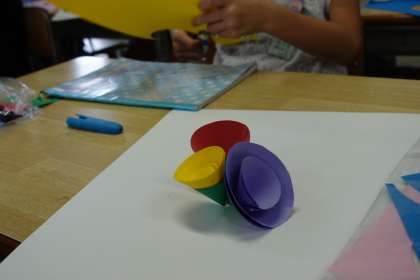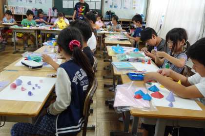 3年2組の図工です。「世界」を表現しているのだそうです。