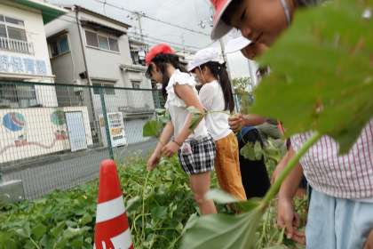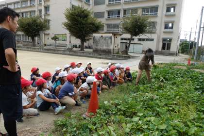 2年2組は生活科の授業です。今日は栄養教諭の太田先生から、芋づるのすじとりを教わりました。