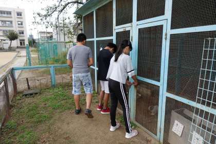 お昼休み、飼育委員さんがウサギの世話をしてくれていました。今日もありがとう。