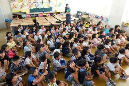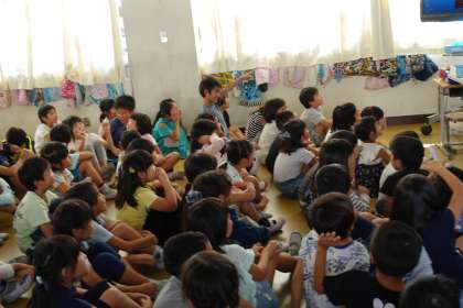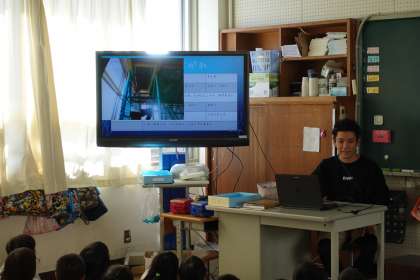 午後の授業風景です。まずは2年生です。金曜日の遠足について、2年生の先生たちが映像を使って説明していました。
