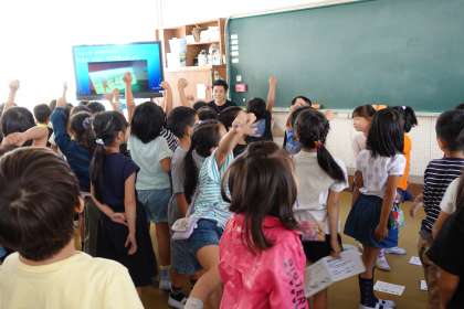 2年生はみんな大爆笑!!いつも2年生の先生たちは、子どもたちを喜ばせようと工夫がたくさんです。