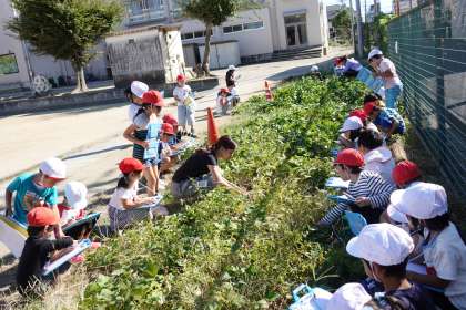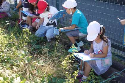 1年1組の続きです。ところどころ小さなサツマイモが、地面から顔をのぞかせていました。