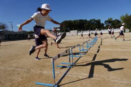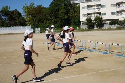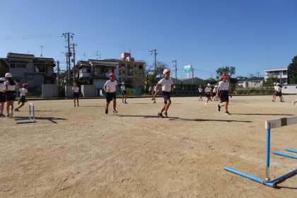 6年3組は、ハードルの練習をしていました。