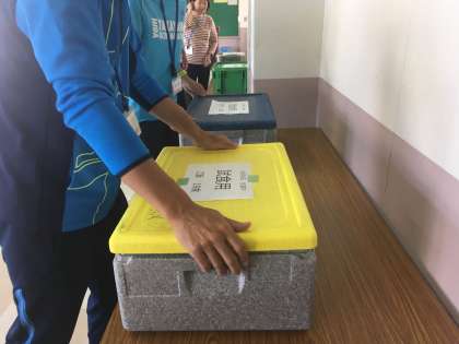 まず、参加者で配膳室から運びます。ケースにはすべて「ダイトン君」が入っています。