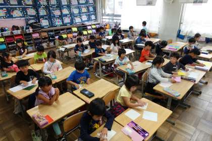 午前中の様子です。1年生の授業風景です。