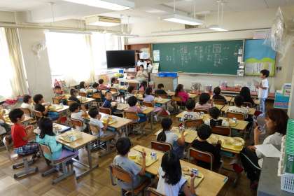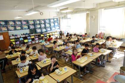 1年2組もおじゃましました。今日の春巻きは、とても人気があります。