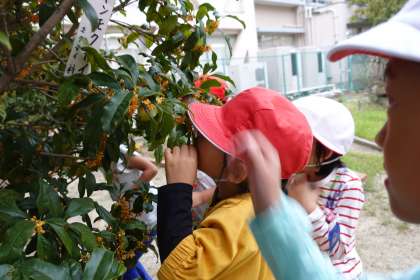 季節を感じます。みんな甘い香りに夢中でした。