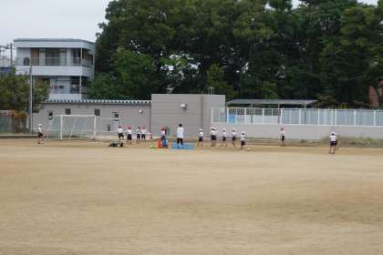 サッカーとキックベースです。雨が降ってきたので、タグラグビーは校舎内に引き上げました。