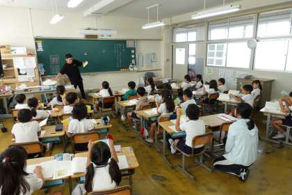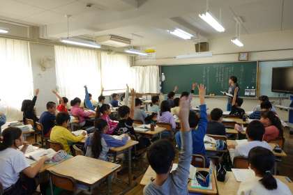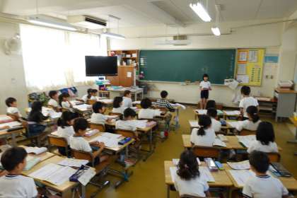 1時間目の様子です。5年2組、2年2組、2年3組です。