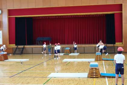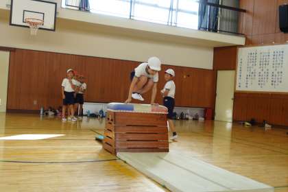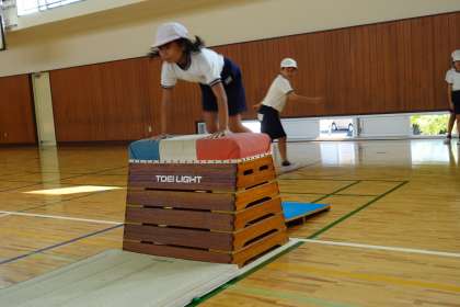 4年2組も体育です。体育館で跳び箱の練習をしていました。