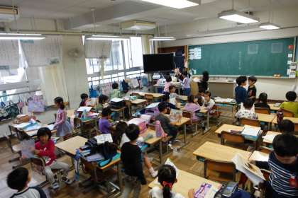 朝の準備をしている1年生です。「あと2人、連絡帳が出ていませんよ。」と、担任の先生の声が聞こえました。忘れずに出しましょうね。