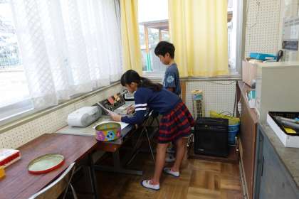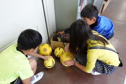 ボールの点検をしてくれている体育委員と、朝の放送中の放送委員です。今日もありがとう!