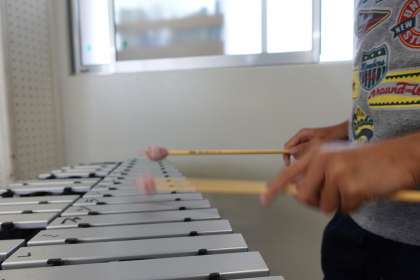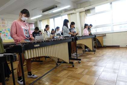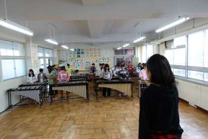 休み時間の音楽室です。6年生が合奏曲の練習をしていました。組曲「ドラゴンクエスト」です。