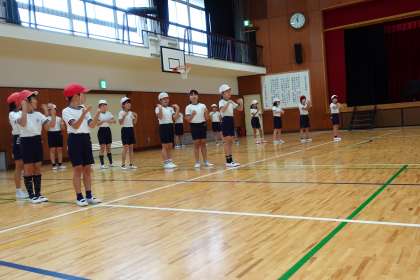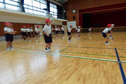 楽しさの中に、集合や整列はけじめがあってテキパキと動いています。素晴らしいです。